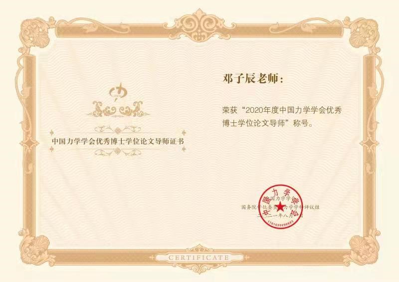 “中国力学学会优秀博士学位论文”奖励由中国力学学会和国务院学位委员会力学学科评议组共同设立,秉承“科学公正、注重创新、严格筛选、宁缺毋滥”的原则,每年仅评选出5篇优秀博士学位论文。李庆军此次获奖论文为动力学与控制学科唯一。