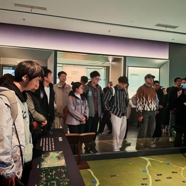 在讲解员的带领下同学们依次参观了“青铜之乡”“周礼之邦”“帝国之路”“智慧之光”四大展区,领略了青铜器风采和辉煌灿烂的周秦文明,特别是参观到距今3000余年的镇院之宝“何尊”前,同学们纷纷驻足围上前来,询问其出土历史,观察其独特造型,凝思其精美铭文。其中“营建洛邑,宅兹中国”的铭文特写更是追溯了“中国”一词的由来,通过解读何尊铭文精神内涵,同学们感悟到这尊珍贵的青铜器承载了古人对国家疆域的认知,更是中华民族大一统理念的早期体现,是中华文明的根与魂。