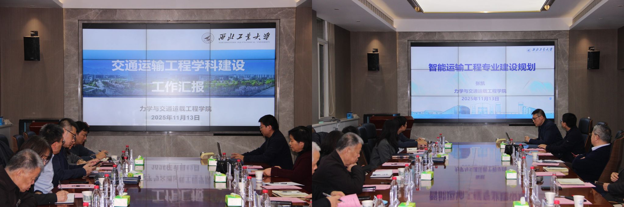 2025年11月13日下午2:30,力学与交通运载工程学院在长安校区206会议室召开交通运输工程学科发展论坛。会议由温志勋教授主持。发展规划处副处长袁云、校内交通运输学科领域专家史忠科教授和李铁虎教授应邀出席,党委书记巨维博、学院院长李栋、等领导班子成员、学科带头人邓子辰及骨干教师代表共同参加研讨。