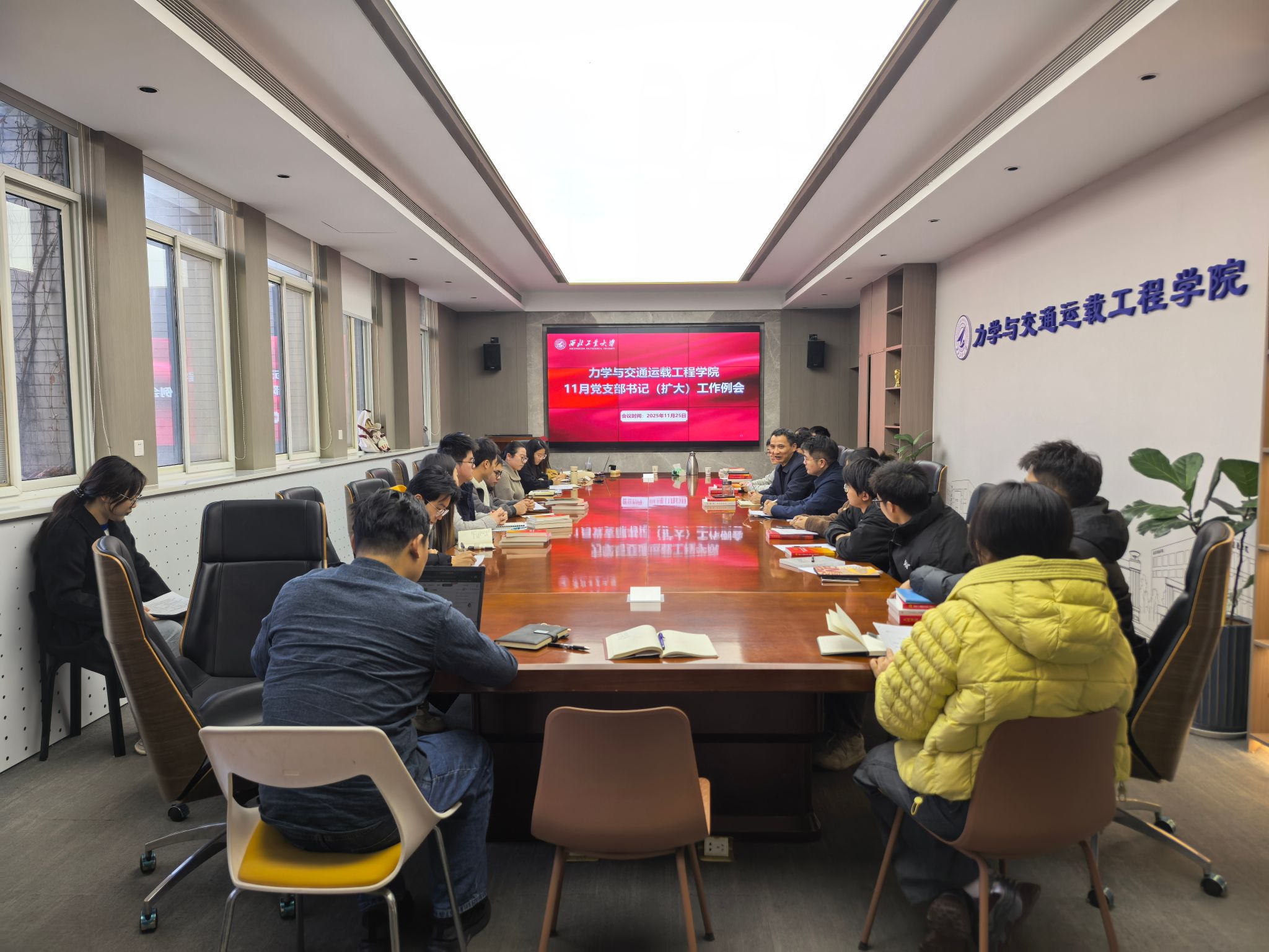 为深入贯彻党的二十届四中全会精神,持续夯实基层党建基础,2025年11月25日下午,力学与交通运载工程学院在206会议室组织召开11月党支部书记(扩大)工作例会。学院党委书记巨维博主持会议,学院全体师生党支部书记、支部委员、专职辅导员参加会议。
