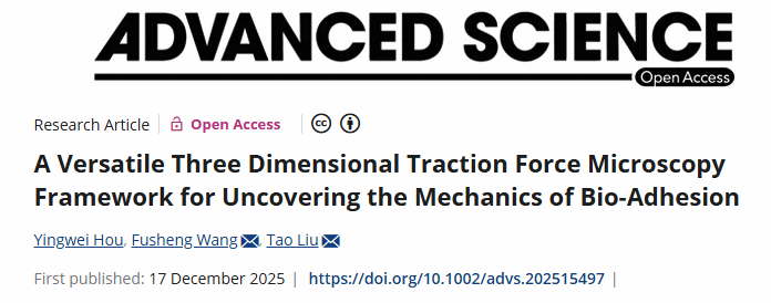近日,国际顶级综合性期刊《Advanced Science》(中科院TOP一区,IF:14.1)以“A versatile three dimensional traction force microscopy framework for uncovering the mechanics of bio-adhesion”为标题在线发表了西北工业大学力学与交通运载工程学院王富生教授及其合作者在界面力学领域的最新研究成果。该研究构建了一种通用的原位三维牵引力显微镜框架,旨在实现组织尺度下湿态环境界面的三维力学分布测量。