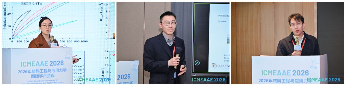 在邀请报告环节,三位特邀专家分享了材料与力学交叉领域的前沿研究成果。北京邮电大学毕科教授通过界面改性策略,在钨青铜结构铁电陶瓷中实现储能性能突破,为多层陶瓷电容器高性能化提供了新思路;加拿大康考迪亚大学Biao Li副教授聚焦地质材料孔隙力学研究,揭示了热—水—力耦合机制,为深部地热开发及冻土保护提供了创新方案;泰国素拉那立皇家大学Amarin Chanpariyavatevong讲师将人工智能技术引入制造监测,通过声音信号深度学习实现刀具磨损智能预测,展现了力学与人工智能交叉融合的广阔前景。相关报告内容前沿、视角多元,为与会者带来了深刻的学术启发。