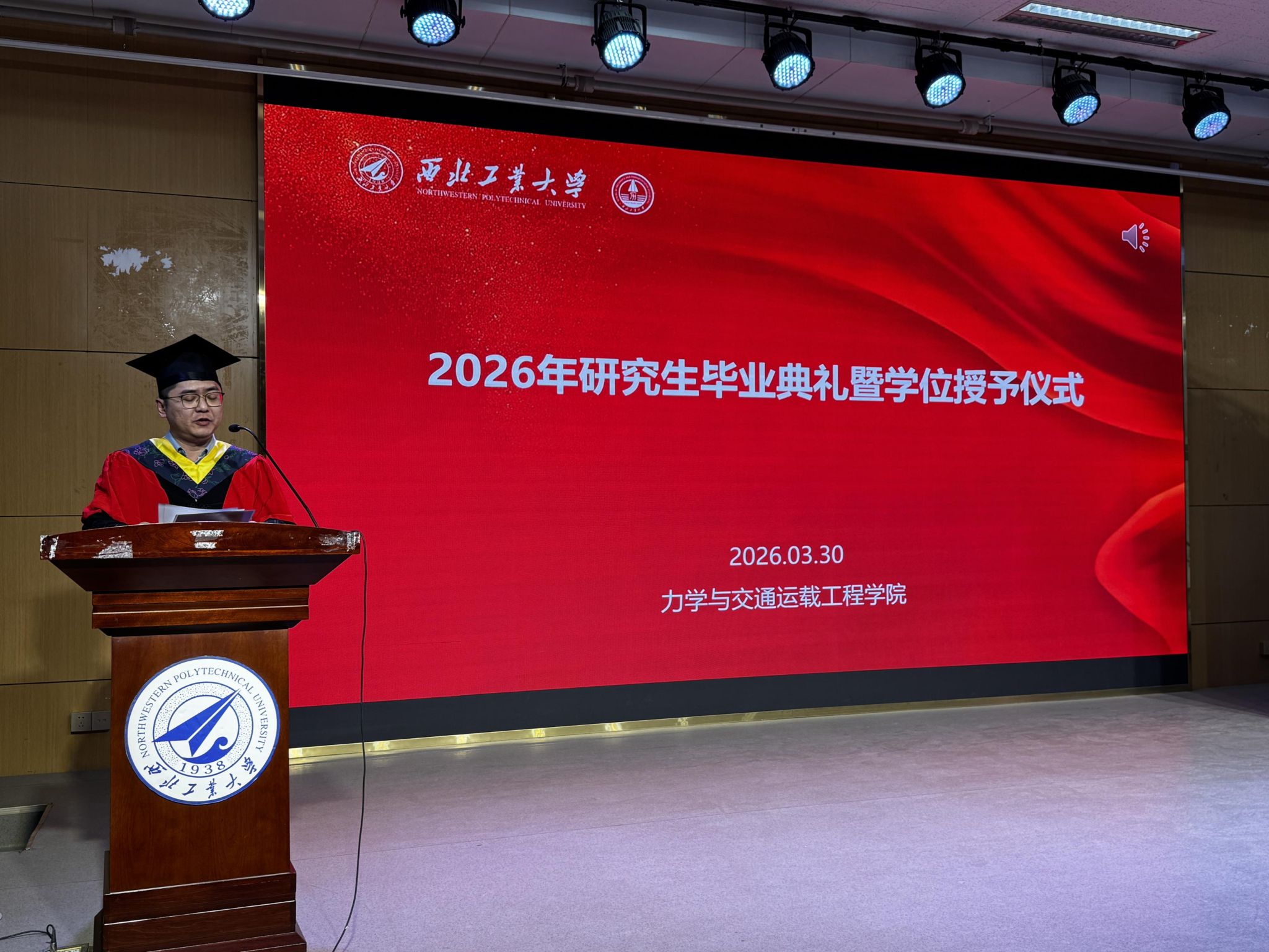 最后,全体师生共同唱响力学与交通运载工程学院院歌,激昂旋律回荡全场,为本次毕业典礼画上圆满句号。愿 2026 届全体毕业生携母校嘱托、怀青春热忱,稳行致远、勇毅前行,在时代征程中书写属于西工大人的精彩篇章!