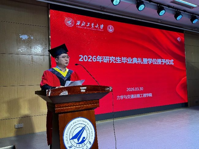 岁月流转,华章日新;骊歌初起,前程似锦。3月30日下午,力学与交通运载工程学院毕业典礼暨学位授予仪式在学院报告厅隆重举行,学院党委书记巨维博、院长李栋,副院长温志勋,工程力学系主任王建辉,交通运载工程系主任常晓通出席研究生毕业典礼,毕业典礼由学院党委副书记路宽主持。